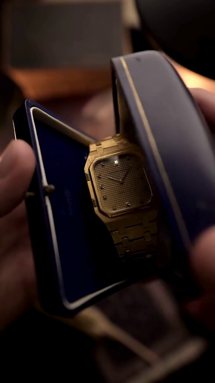 Crafted entirely in solid 18k yellow gold, the rectangular case exudes understated luxury with sharp lines and a slim, architectural profile. Its proportions sit gracefully on the wrist, offering a sophisticated alternative to traditional round sports watches. The integrated gold bracelet, finished with Audemars Piguet’s renowned attention to detail, enhances both comfort and visual continuity.