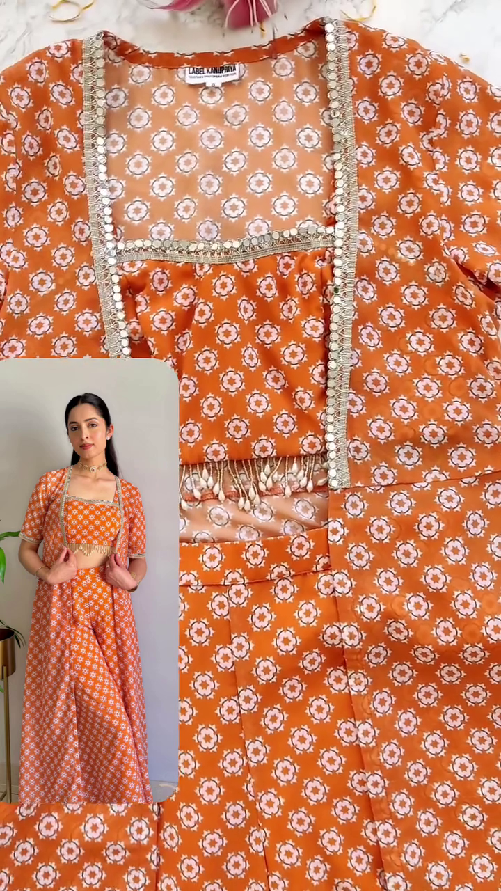 Fabric : Georgette (Jacket, crop top and pants)