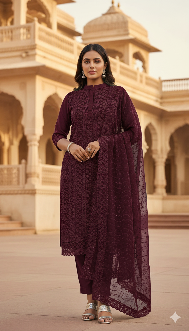 When it comes to Indian ethnic wear, nothing can match the timeless charm of an embroidered suit. From festive occasions to family functions and weddings, suits crafted from georgette fabric with intricate embroidery work remain a staple in every woman’s wardrobe.