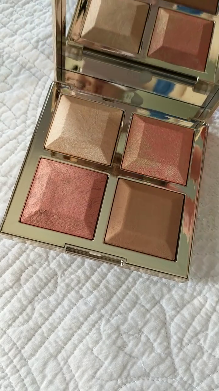 The glow shade takes center stage when you want that lit-from-within radiance. Not just glittery sparkle, but a refined sheen that mimics reflected light. Apply it where the sun naturally hits your face — cheekbones, bridge of the nose, inner corners of the eyes, brow bones, and Cupid’s bow — to capture a soft, youthful luminosity.