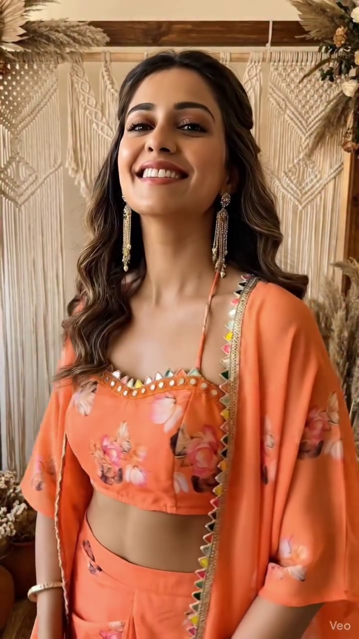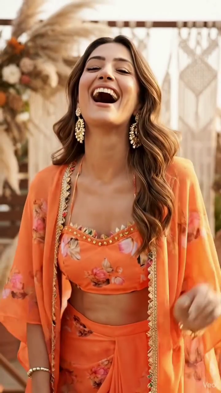 Orange Lotus Crop-top and Draped Skirt Co-ord Set