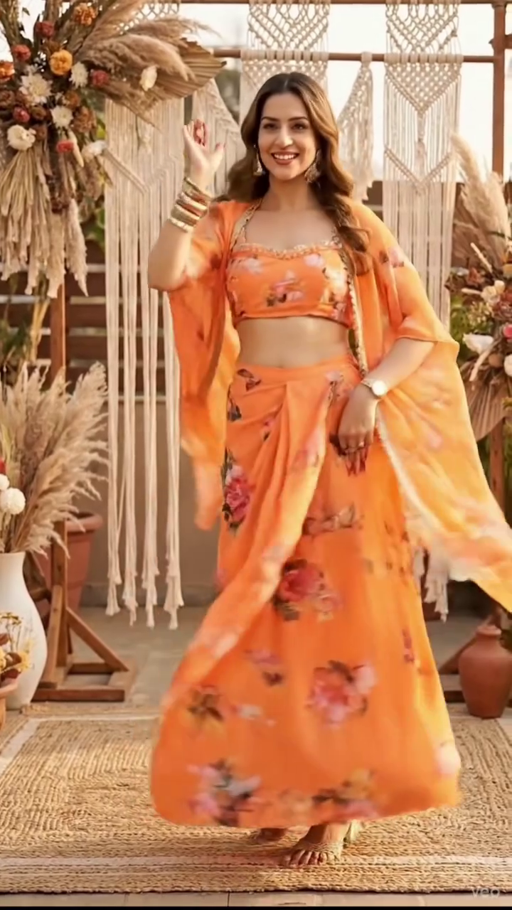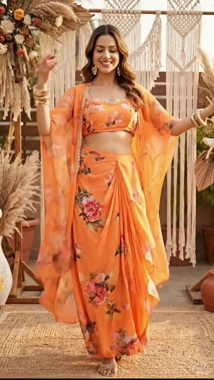 Fabric : Georgette (Jacket, crop top and draped skirt)