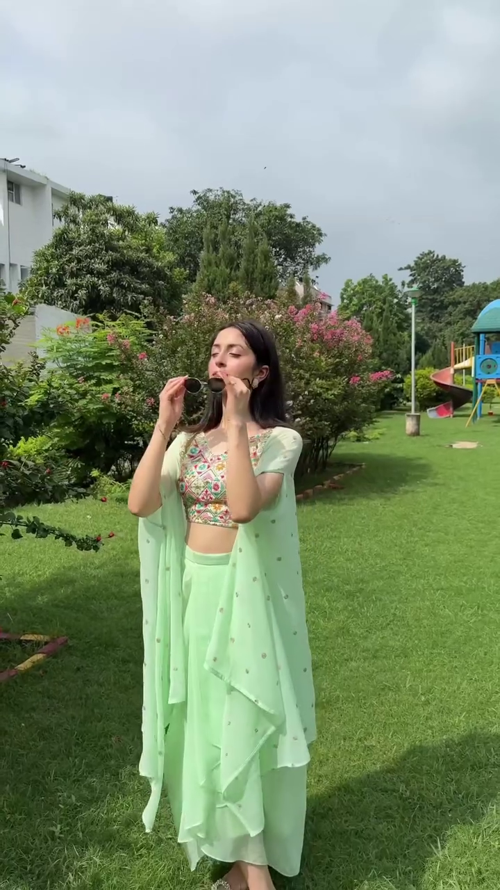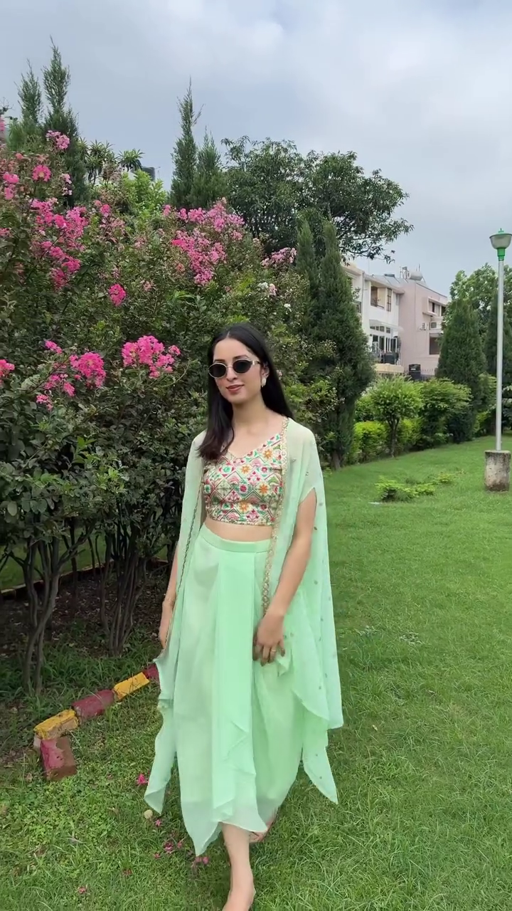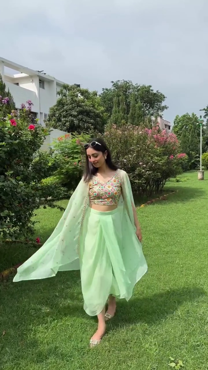 This co-ords consists of top, shrug and skirt