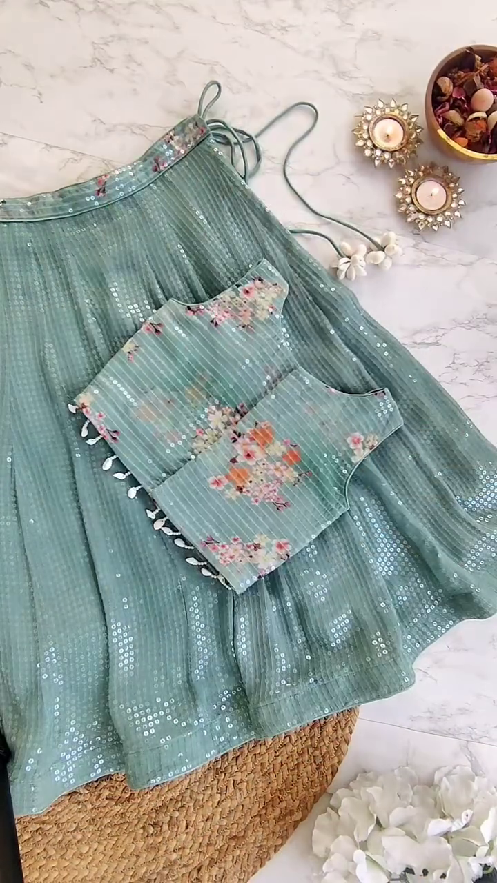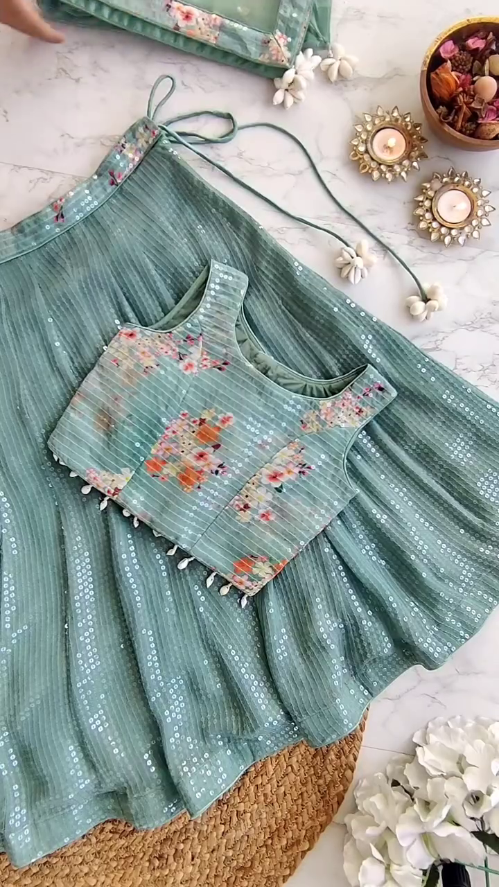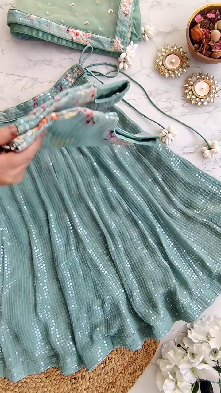 • Sage Green Lehenga in Sequinned Georgette